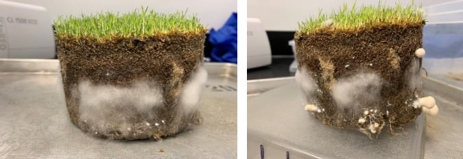 Биологический контроль. В программе борьбы с «серой снежной плесенью» есть две ключевые точки, когда можно применять биологические препараты как альтернативу фунгицидам. Первая это во время активного цикла гриба, зимой. Существует естественный антагонист из того же рода Typhula, который не наносит ущерба газону, но активно блокирует развитие и Typhula ishicariensis и Typhula incarnata, он носит название Typhula phacorrhiza. В настоящее время найдено несколько изолятов этого гриба которые работают на уровне фунгицидов, практически полностью подавляя активность вышеназванных патогенов, к сожалению, они воздействуют только на род Typhula, а в борьбе с возбудителем «розовой снежной плесени» и других «зимних» болезней придется применять фунгициды. Второй точкой в стратегии борьбы с данными возбудителями является время, когда склероции находятся в состоянии покоя, летом и осенью. Одним из таких анагонистов является бактерия Pseudomonas fluorescens, которая сдерживает прорастание склероций, но, к сожалению, ее активность при низких температурах сильно снижается.